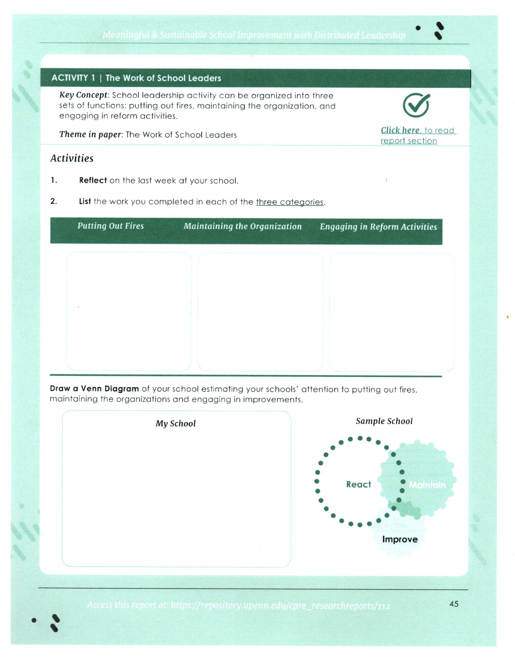 Access to Report and Activities: Meaningful and Sustainable School Improvement Through Distributed Leadership Activities